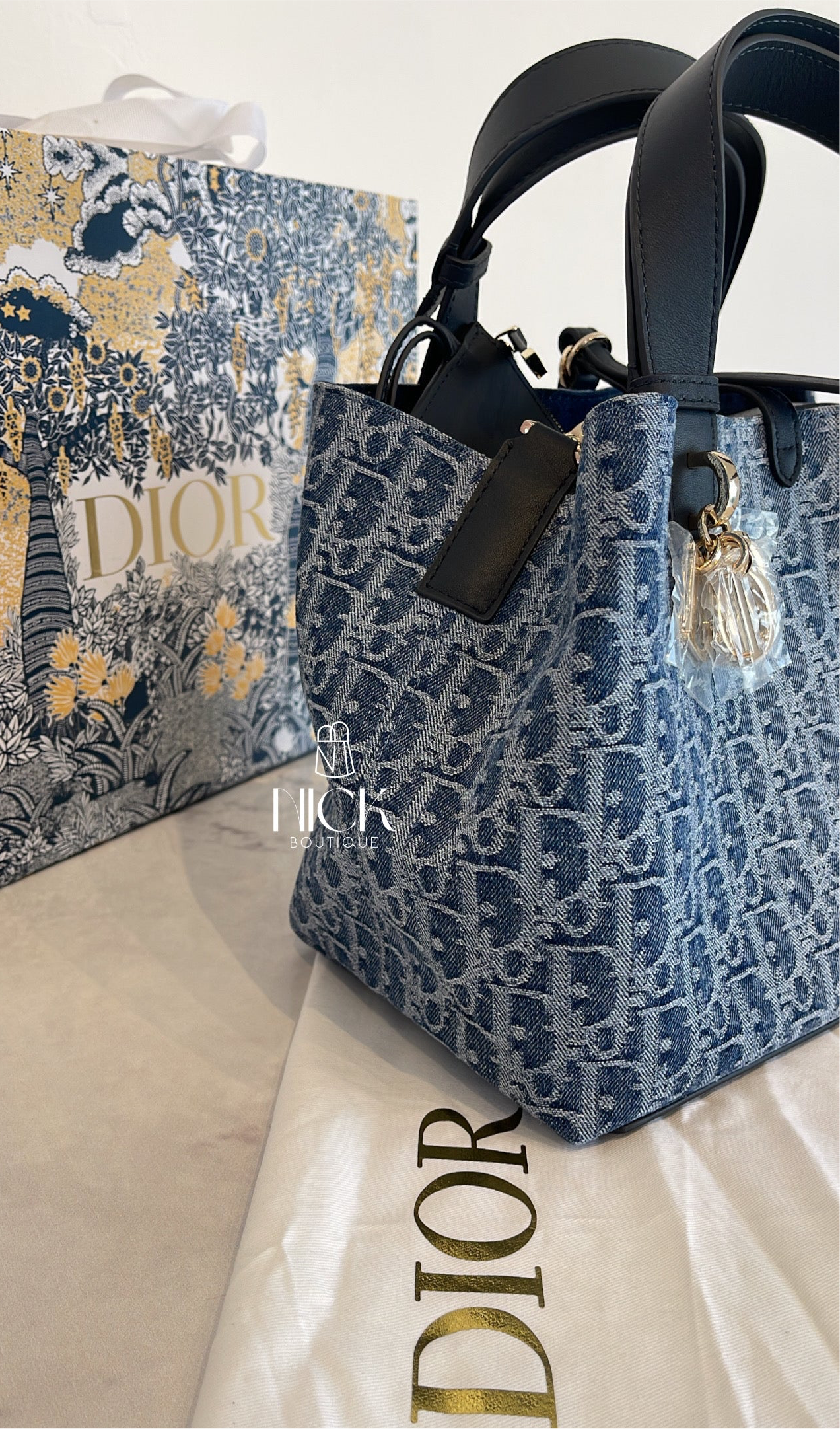 - Fechamento duplo: uma fina tira que envolve a bolsa e uma tira Christian Dior Paris com fecho CD Lock