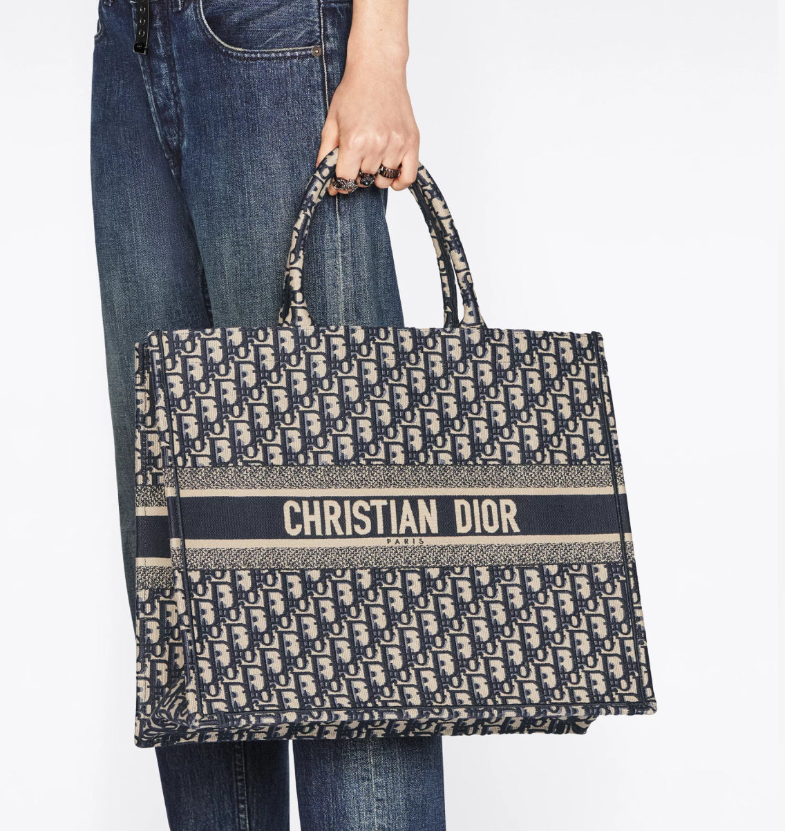 Criado para guardar todos os itens essenciais do dia a dia, o modelo é inteiramente bordado com o emblemático motivo Dior Oblique cru e azul. Adornada com a inscrição Christian Dior Paris na frente, a tote grande é um exemplo perfeito do savoir-faire exclusivo da Maison e pode ser usada na mão ou no ombro.