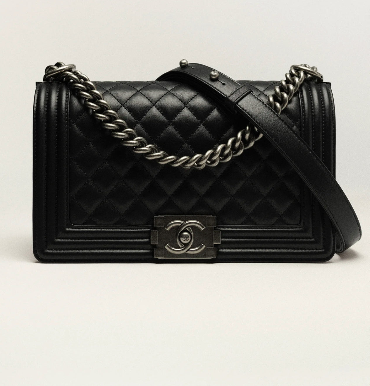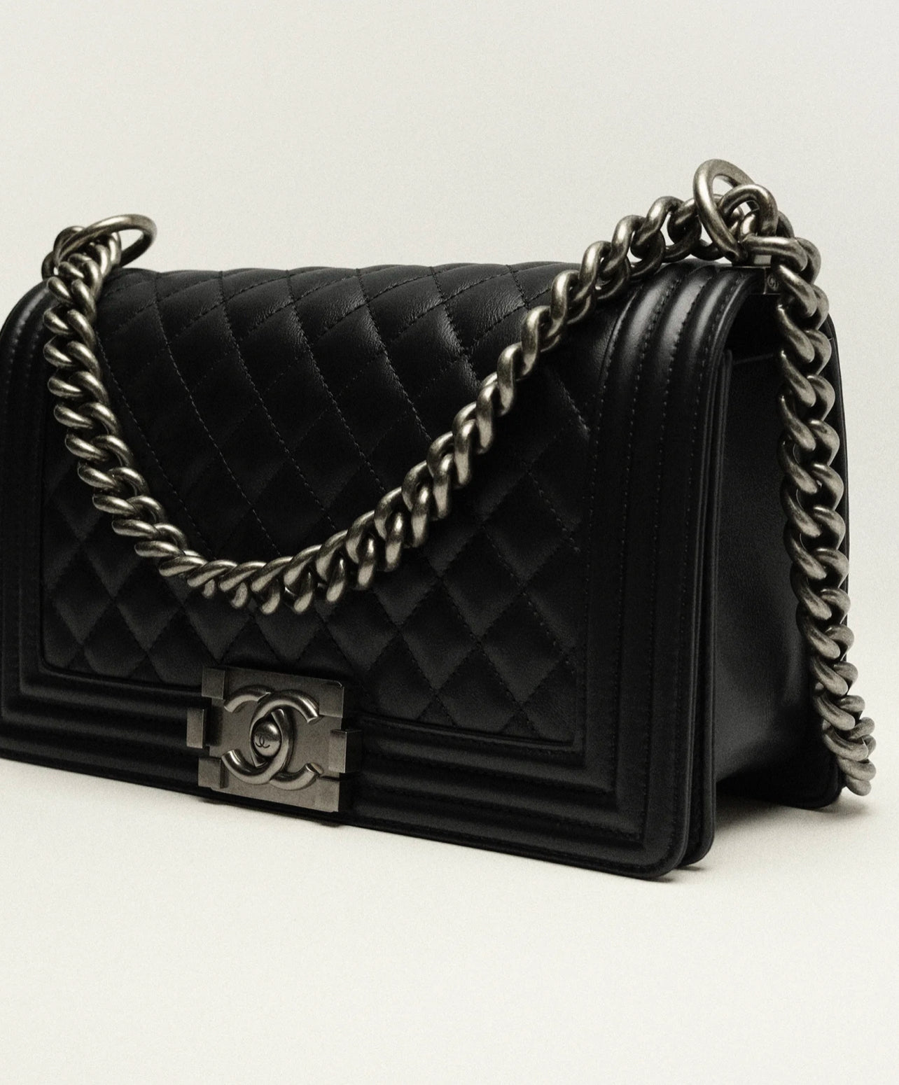 Couro de Novilho Granulado Brilhante & Metal com Acabamento em Rutênio.