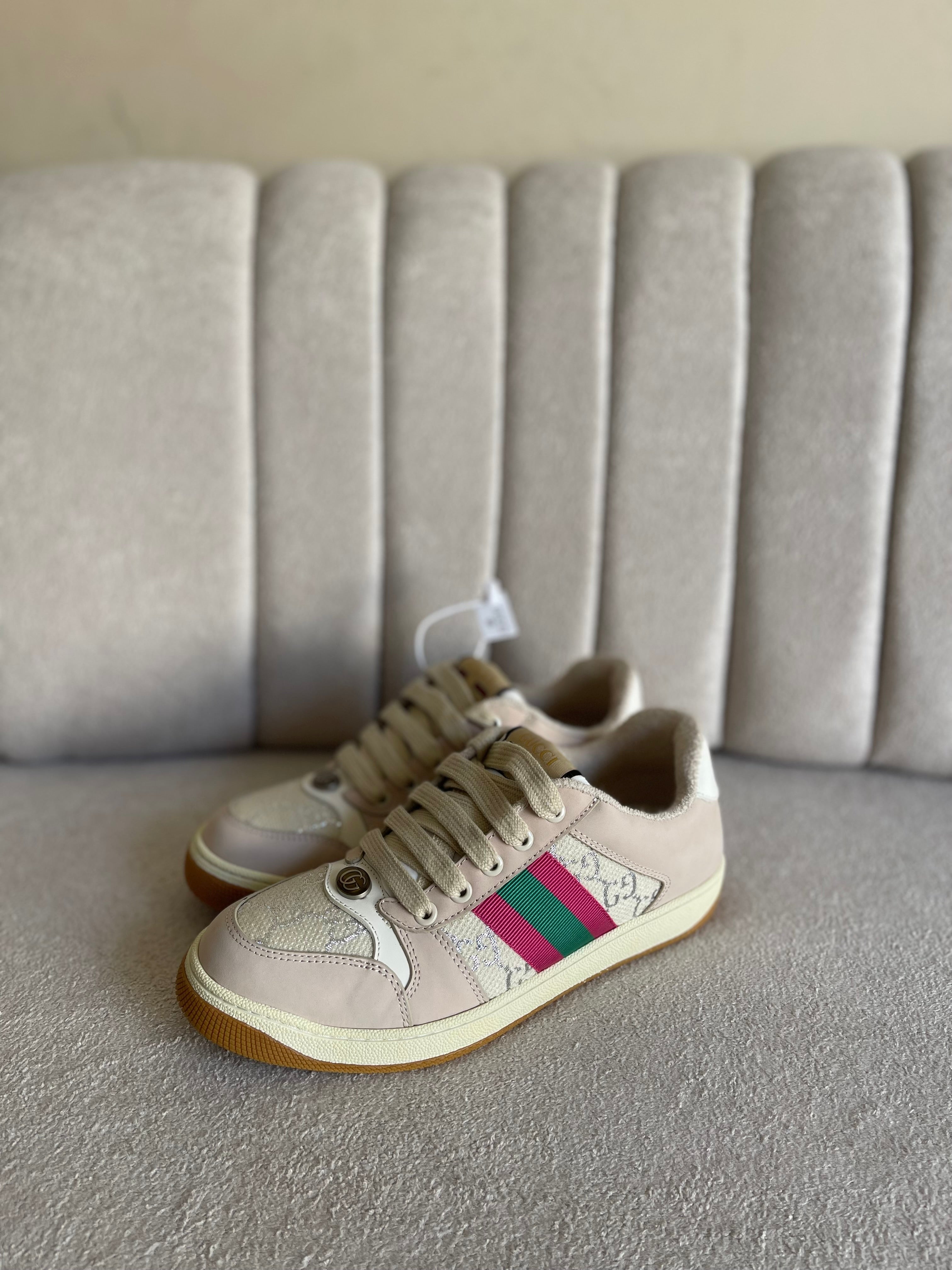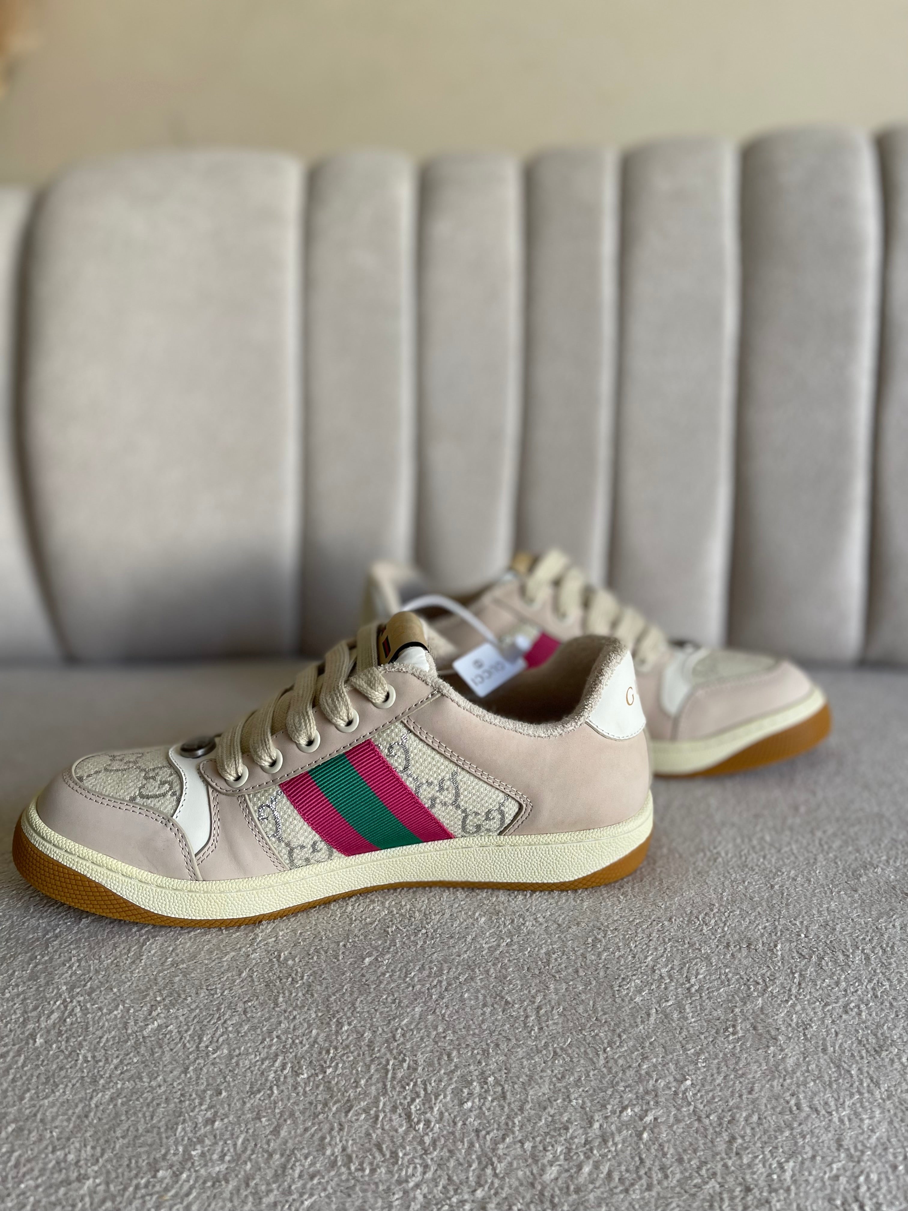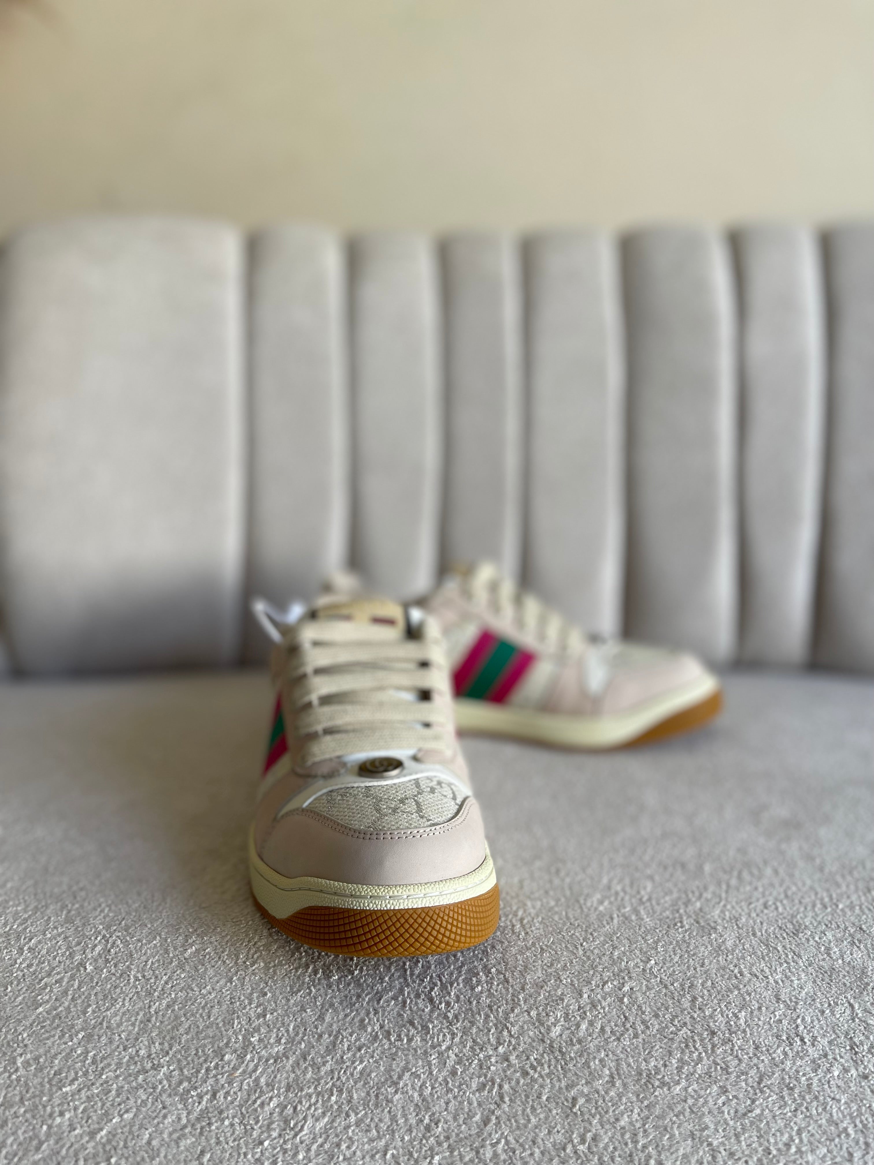 Tênis Gucci Screener com a faixa Web verde e vermelha